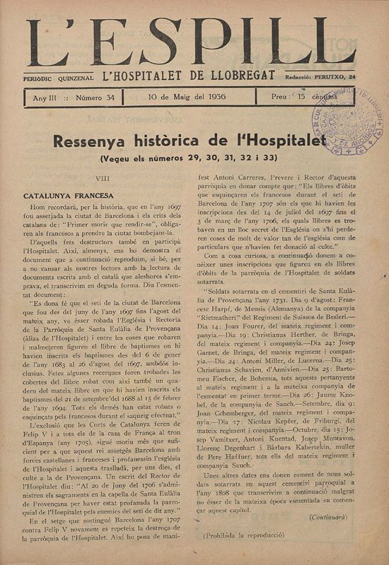 Periòdic quinzenal adreçat al lector de l’Hospitalet, amb informació cultural, esportiva, científica i política. Entre novembre del 1934 i juny del 1936 va treure 36 números, tots conservats a l’Arxiu Municipal.