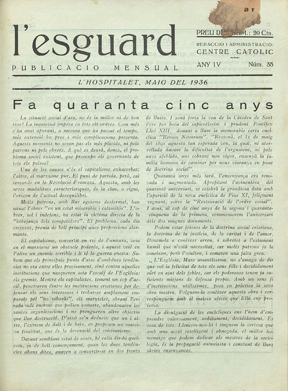 Publicació mensual del Centre Catòlic de L’Hospitalet. Atenta a les informacions de caire religiós, entre el 1928 i el 1936 va editar 36 números, 27 dels quals es conserven a l’Arxiu Municipal.