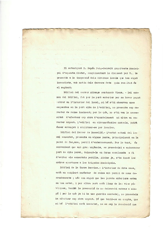 Dictamen de l'arquitecte municipal sobre la inspecció d'uns edificis afectats pels fets de juliol de 1936