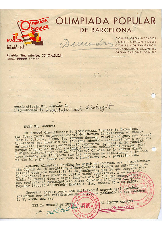 Les dues ciutats finalistes per organitzar els Jocs Olímpics de 1936 eren Berlín i Barcelona. Finalment el Comitè Olímpic Internacional es va decantar per la capital alemanya. Però amb l’ascens de Hitler al poder, aquells Jocs Olímpics anaven encaminats a ser una apologia del nazisme. Per això, Barcelona no es va quedar de braços plegats i va decidir organitzar unes Olimpíades alternatives que volien transmetre uns valors molt diferents als de la dictadura del partit nazi. L’anomenada Olimpíada Popular havia de celebrar-se del 19 al 26 de juliol. S’hi havien inscrit més de 5.000 atletes de tot el món i els dies abans van arribar a la ciutat 20.000 visitants. Malauradament, el cop d’Estat i l’inici de la Guerra Civil van impossibilitar la celebració dels Jocs.