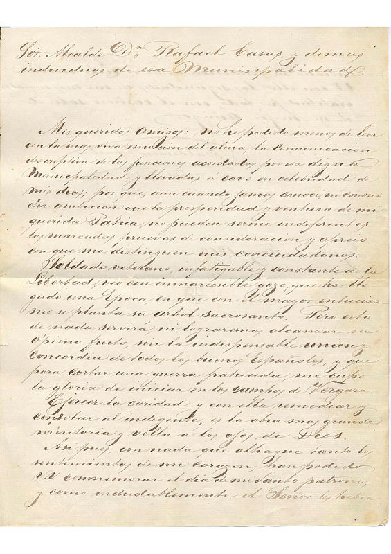 Aquí veiem digitalitzada la carta d’agraïment que va fer arribar a l'Ajuntament de l'Hospitalet el general Baldomero d’Espartero, signada per ell mateix el 6 de març de 1869 que es conserva a l’Arxiu Municipal de l’Hospitalet, en la que es declara profundament emocionat per aquest reconeixement i fa una defensa dels valors liberals que el van animar sempre.